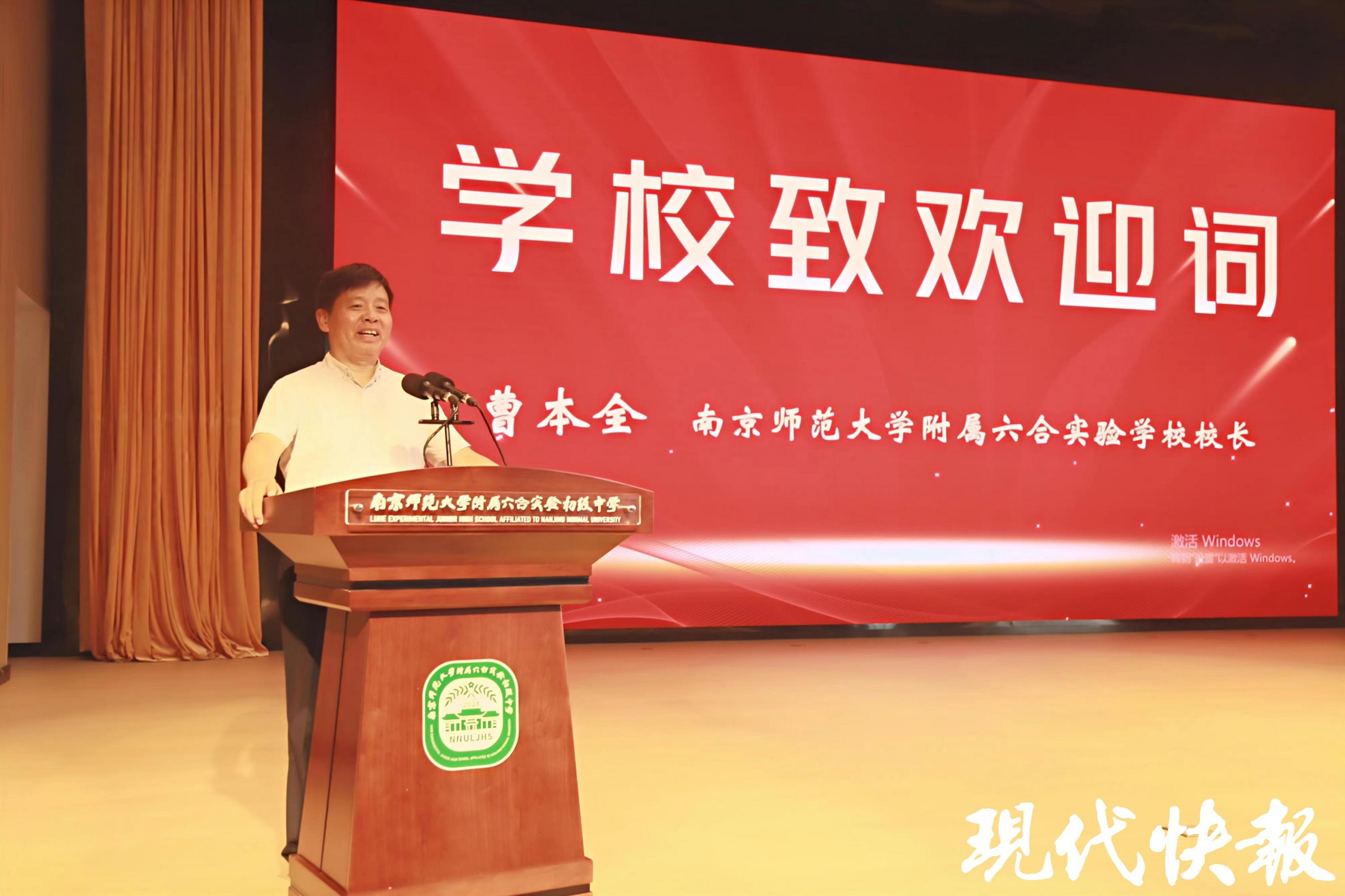 学校校长曹本全致辞,他将六合实验学校的启用比作教育版图上的一颗璀璨新星,标志着六合区与高校合作办学的新纪元。他寄语全校师生,携手并肩,以满腔的激情与不懈的努力,共绘教育新画卷,让南师大六合实验学校的未来更加绚烂多彩,为六合教育书写浓墨重彩的一笔。