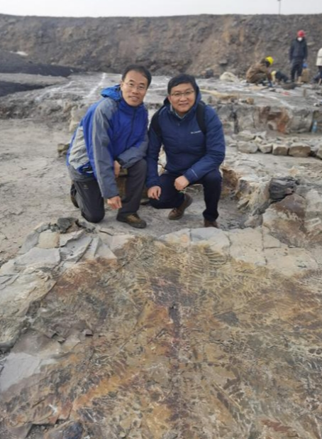 王军(左)在“植物庞贝城”发掘现场。中国科学院南京地质古生物研究所供图