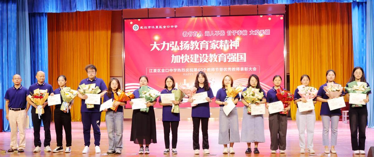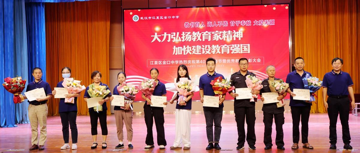 9月10日,武汉市江夏区金口中学举行庆祝第40个教师节活动,在颁发2023-2024学年度优秀教师奖时,为84位优秀教师颁奖的是他们所带班的班长们。