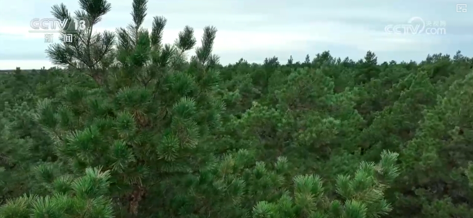 当时能移栽到地里的樟子松只有这棵小苗这么大,生长了2年的时间,高度20厘米左右,胸径不足1厘米。然而就是这样一棵棵小苗,成为了这片沙海的希望。70多年后的今天,这片松林当中最高的樟子松已经长到了将近20米的高度,胸径超过了40厘米。而此刻我们看到的满眼青绿,就是中国第一片樟子松引种固沙林。
