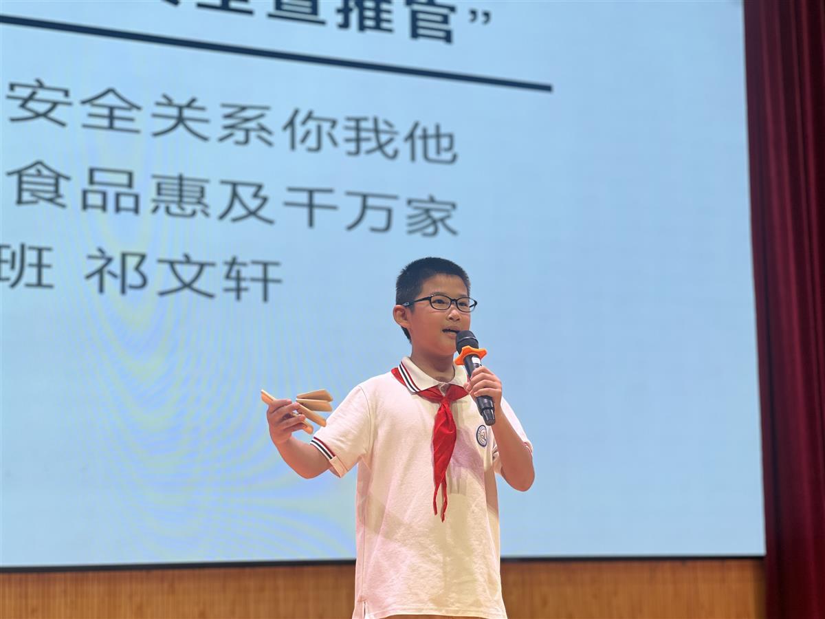 当美味佳肴摆满餐桌,食品安全成了我们关注的另一焦点。荣获武汉市“优秀安全宣推官”的507班祁文轩同学,为师生们带来了一场别开生面的食品安全小课堂,让大家深刻认识到“食品安全关系你我他,安全食品惠及千万家”。