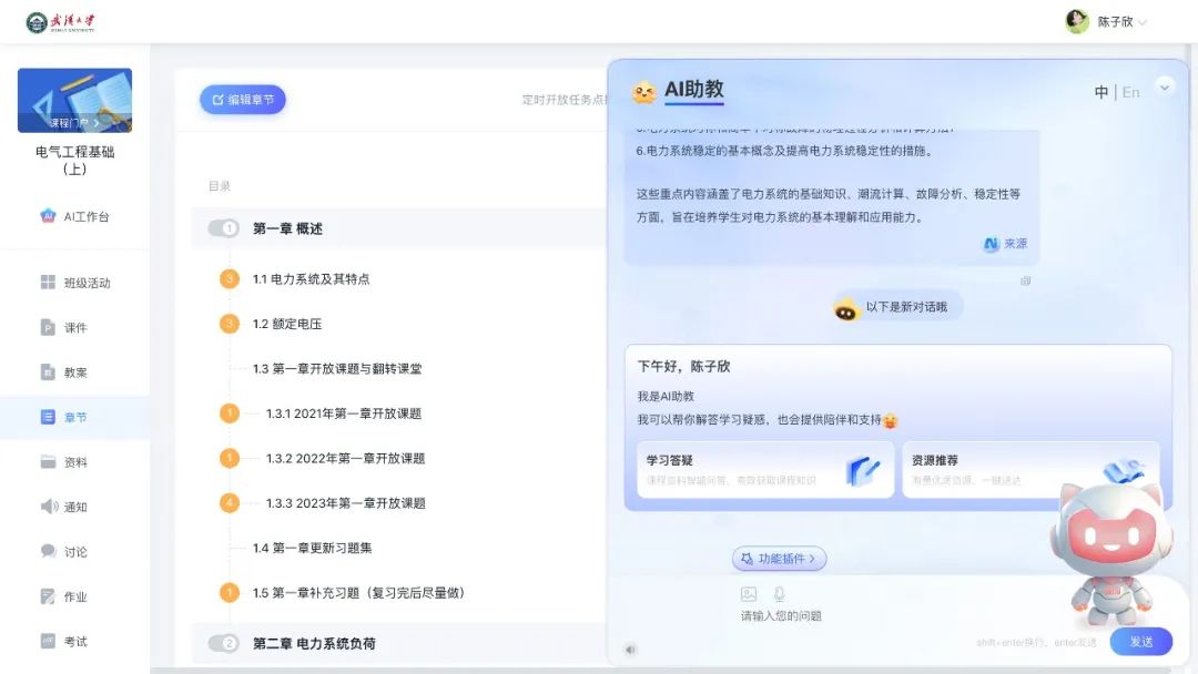 珈珈的存在,是武汉大学在在线教育领域深耕细作的又一力证。她不仅能够在海量学习资源中精准定位同学们的需求,还能根据每位同学的学习进度与兴趣偏好,贴心推送个性化的学习路径与知识图谱。在珈珈的陪伴下,武汉大学的混合教学课堂变得更加生动、高效,同学们在知识的海洋中畅游,享受着智慧教育带来的无限乐趣。