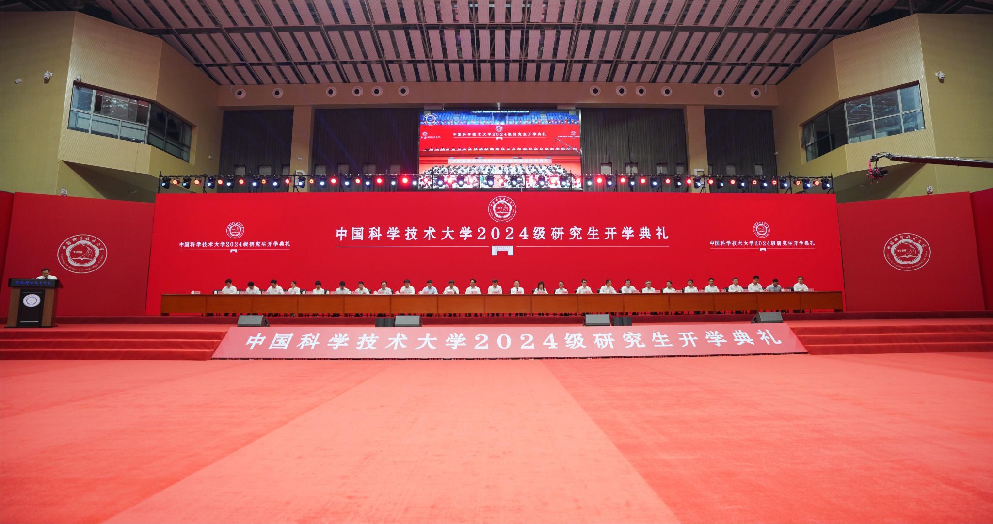 9月20日,中国科大迎来66岁生日,中国科学技术大学2024级研究生开学典礼在学校中校区综合体育馆举行。校领导舒歌群、包信和、蒋一、刘浏、邓建松、汪毓明,校友代表、空天飞行空气动力科学与技术全国重点实验室主任陈坚强,相关学院负责人出席开学典礼。2024级研究生新生以线上线下相结合的方式参加开学典礼。副校长杨金龙主持开学典礼。
