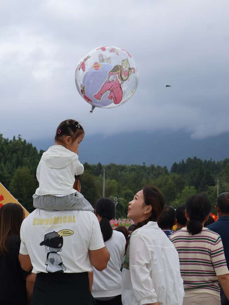 “丰收节”现场,一家三口正在观看庆祝节目。被爸爸高高托举起的孩子,在锣鼓喧天的热闹氛围里自得其乐。