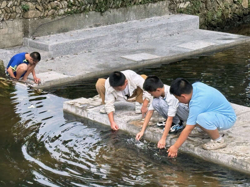 在“丰收节”现场,小小池塘对孩子们有大大的吸引力。