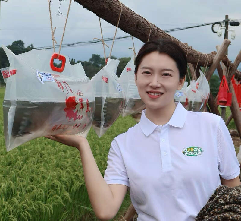 今天来到“丰收节”,第一次了解到祁门军鱼。人工繁育的品种又肥又大,它们被装在袋子里,整齐地挂在杆子上。后来我们发现,农民趣味运动会的项目之一就是“徒手捉活鱼”,这些祁门军鱼被放到一段两头被拦住的河道里,大家下河,谁能抓到鱼就归谁!抓鱼大赛热火朝天,河面上水花四溅,可真是一场酣畅淋漓的“浑水摸鱼”。