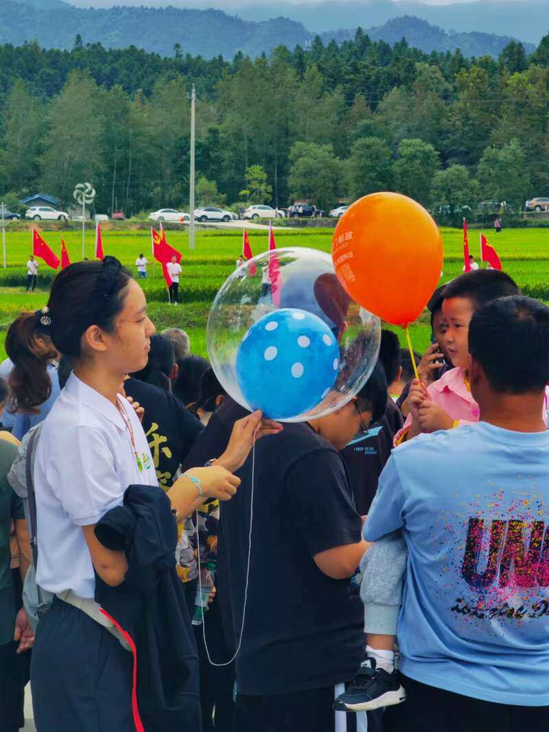 穿过一望无际的麦田,我和同伴们在“丰收节”现场进行“全国大学生文明旅游实践活动”现场宣讲。大朋友与小朋友眼神通过碰撞的气球交会在一起,笑声回荡在麦田里。