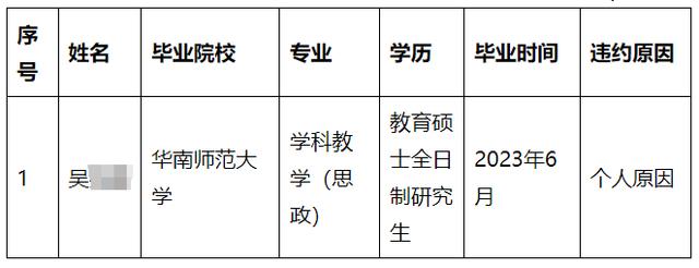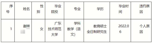 近日,广东四地教育局通报违约的定向培养学生名单。