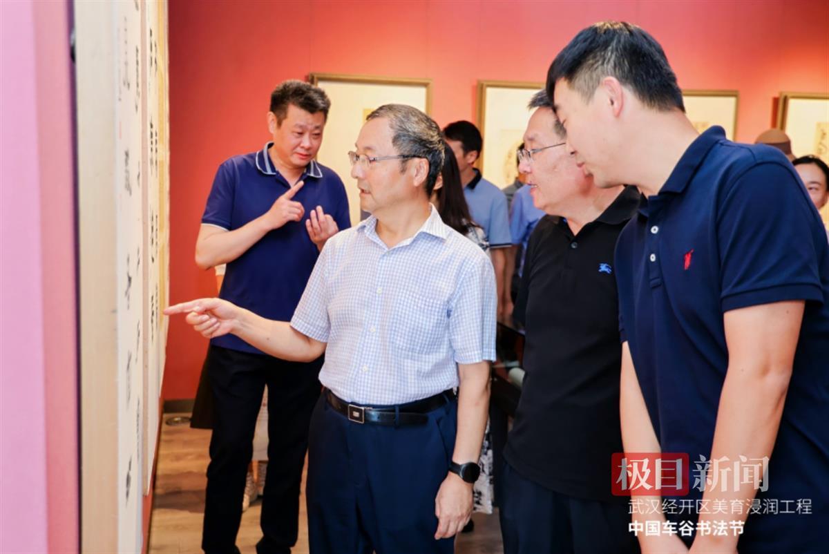 第十三届武汉市政协党组副书记、副主席谭仁杰宣布开幕式开幕,来自全国的20名书法博士、教授向武汉经开区教育系统赠送了22幅书法作品。