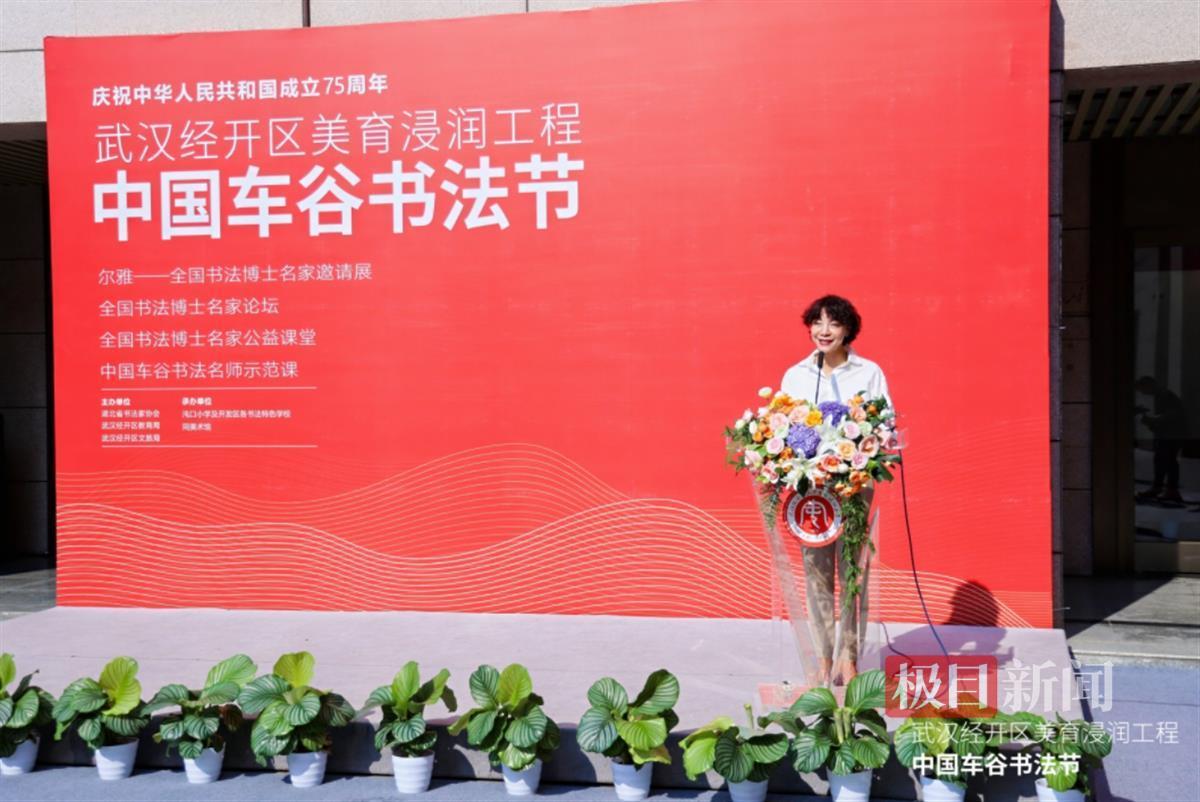 武汉经开区教育局党委书记、局长熊白莉在致辞中对出席活动的各位领导、来宾、师生表示热烈欢迎,并对长期支持经开区书法教育事业发展的湖北省书法家协会及各位书法博士表示衷心感谢。她强调,美育是塑造青少年美好心灵、提升人文素养的关键路径,书法作为中国传统文化的重要组成部分,对于传承和弘扬中华优秀传统文化具有重要意义。