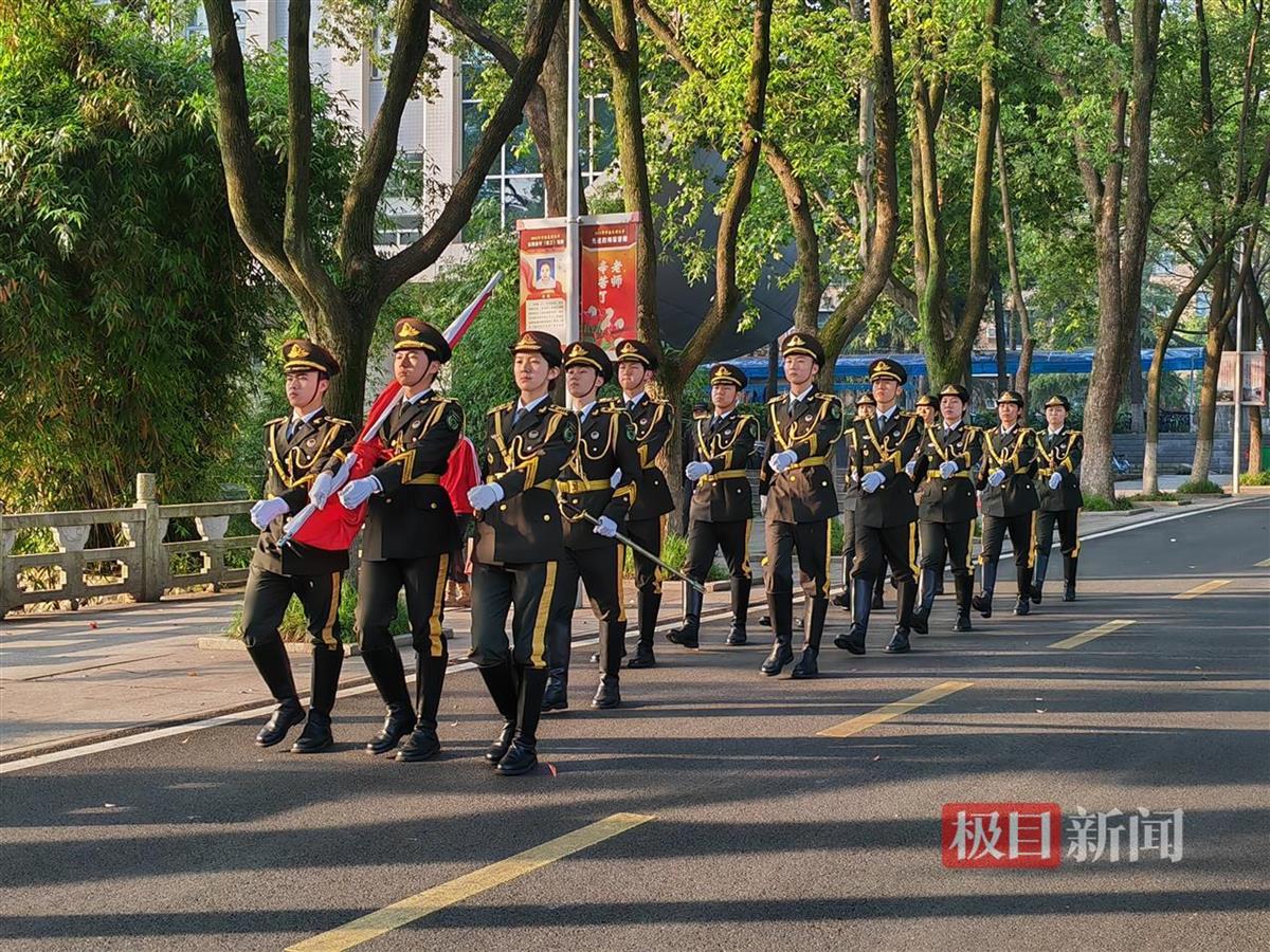 平时训练,何乐洋负责规范队员动作、纠正错误摆臂姿势、帮队员捏肩放松等等。尽管训练常常顶着高温,汗水流下沾湿衣襟,但每当国歌奏响,国旗班展现出训练有素、整齐划一的风采,望着迎风飘扬的五星红旗,他觉得所有的付出都值得,心中便会倍感满足与自豪。“一次次的训练不仅能让我们的动作更加标准,更是对毅力和品格的磨砺,让我对国旗更加尊敬,用激情与热忱完成每一次国旗护卫工作。”何乐洋说。