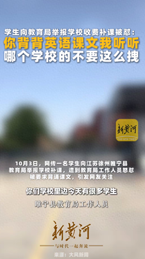 “你告诉我你哪个学校的!不要那么拽!”10月3日,网传一名学生向江苏徐州睢宁县教育局举报学校补课,遭到教育局工作人员连番怒怼,还被要求背诵课文,引发网友关注。4日,徐州市教育局回应记者称,将加强对值班工作人员的管理。