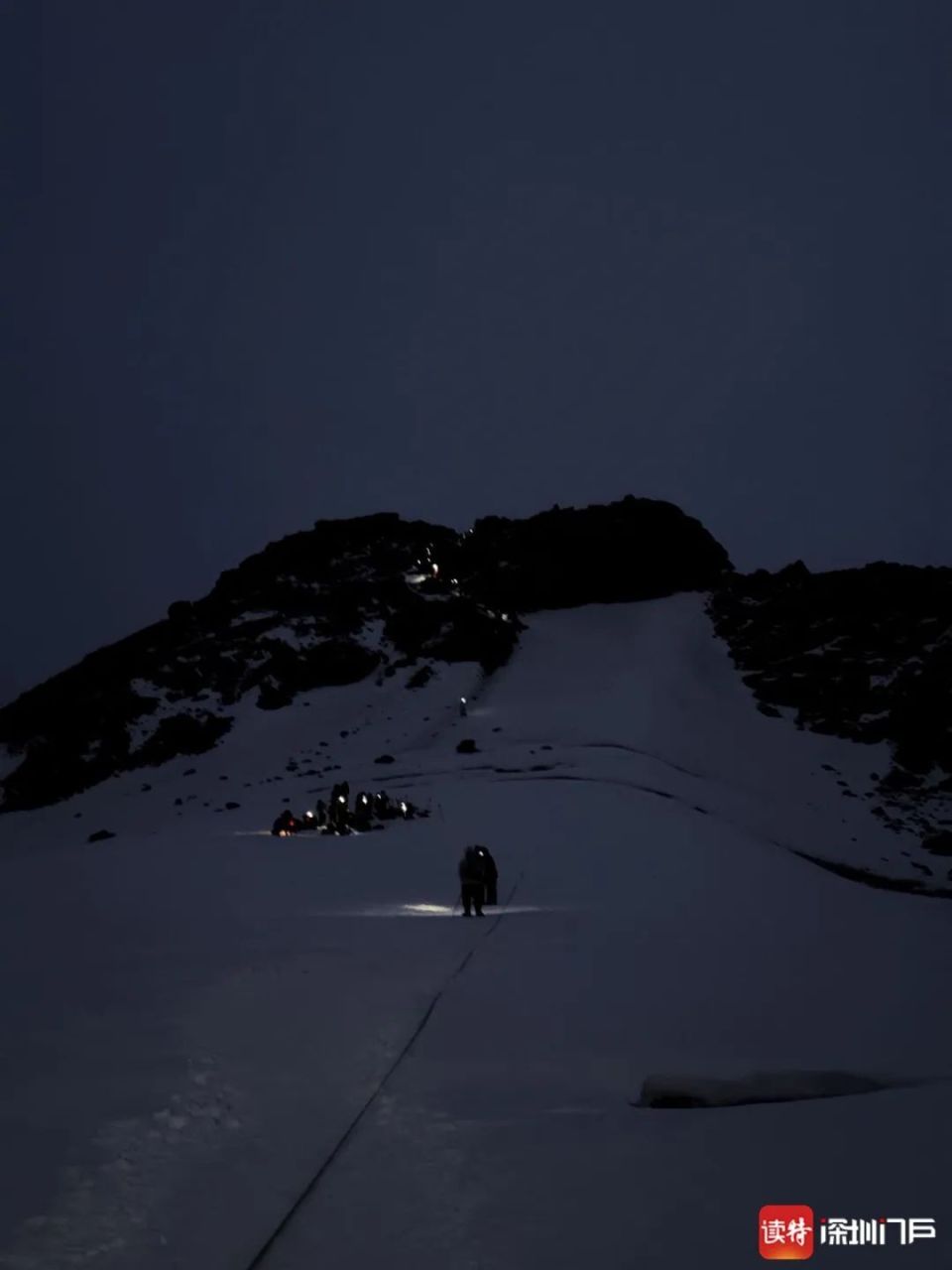 攀登之路并非一帆风顺。宋孟桥描述了登顶时的惊险:“在我们登顶时,暴风雪突然袭来,下山之路变得异常险峻。尤其是一段乱石路,被雪覆盖后,我们根本无法看清地面,频频摔倒。幸运地是,我们并没有受到严重的伤害。”