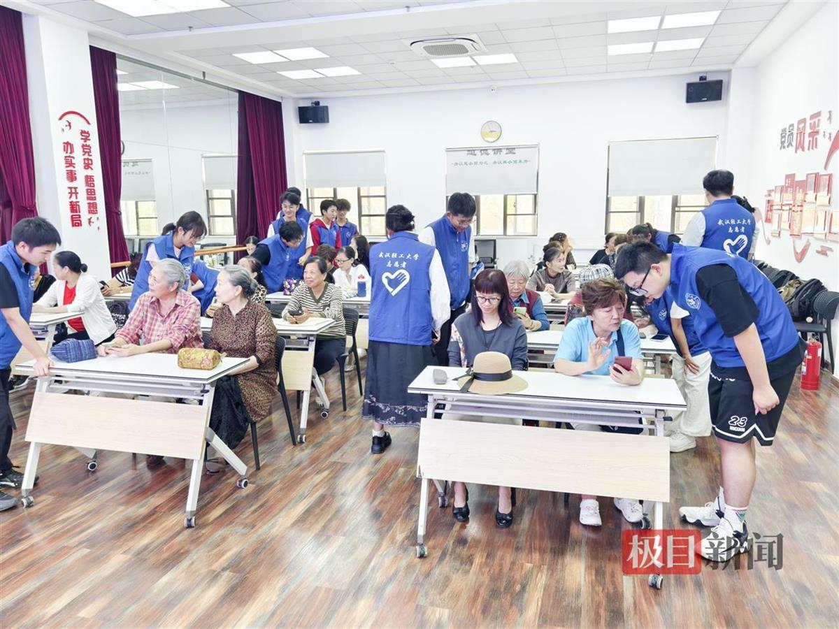 在重阳节之际,10月10日、11日,武汉轻工大学数学与计算机学院的15名大学生志愿者和退役大学生士兵,前往武汉市东西湖区金银湖街道花城社区、学府社区,开展“贺九九重阳,显浓浓温情”主题活动,陪伴社区老人制作茱萸香包、下棋等,并为社区高龄退伍老兵佩戴茱萸,在助老服务中增强感恩意识,传承孝道文化。