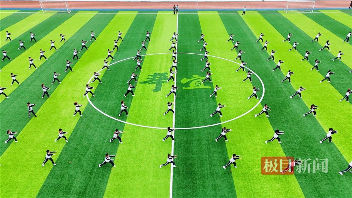 学校体育精品课程“武术精华拳”压轴登场,照片由学生通过无人机拍摄