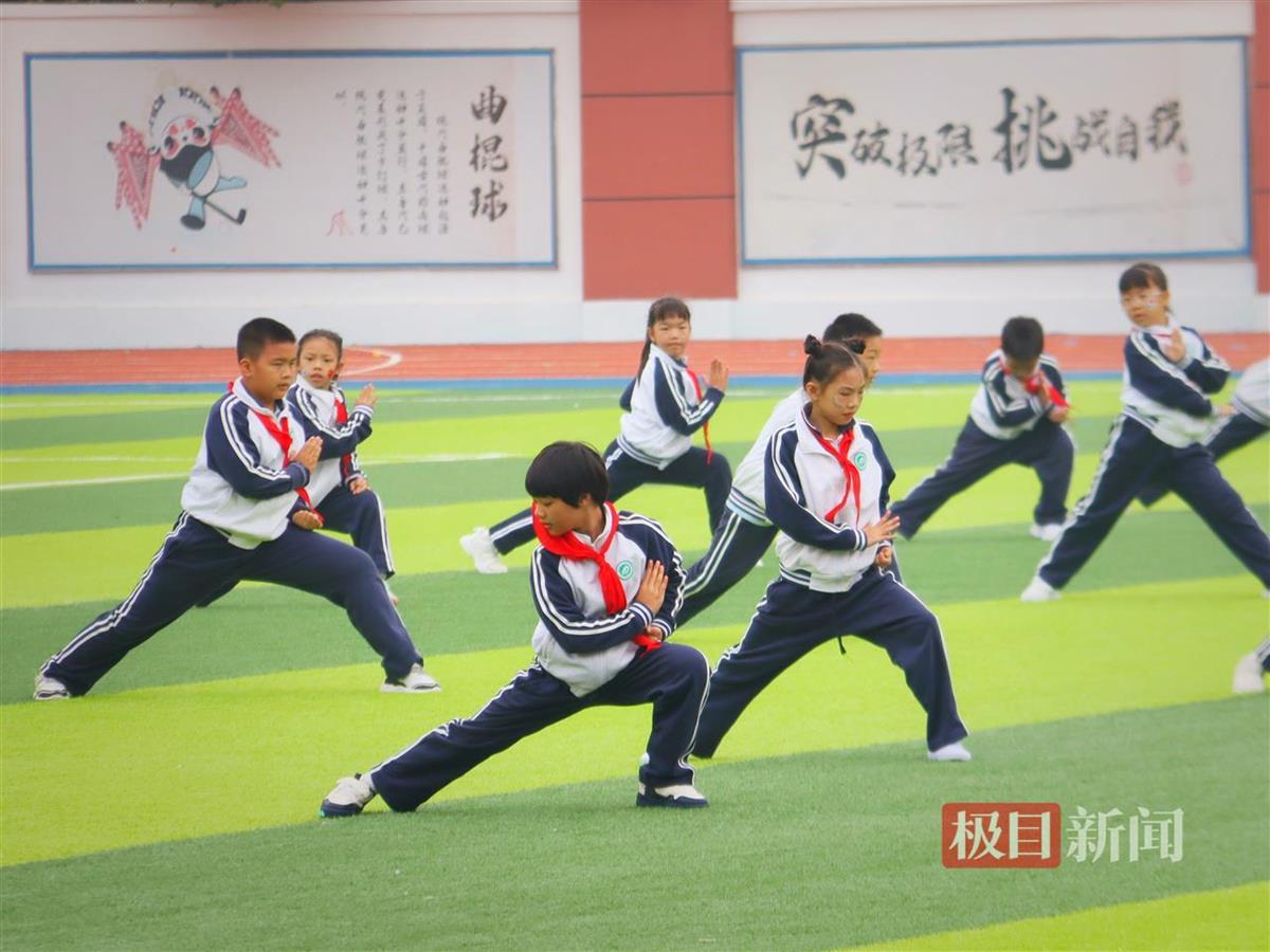 作为武汉市武昌区阳光体育示范学校,该校大力推进体育文化建设,人人学好羽毛球、武术精华拳