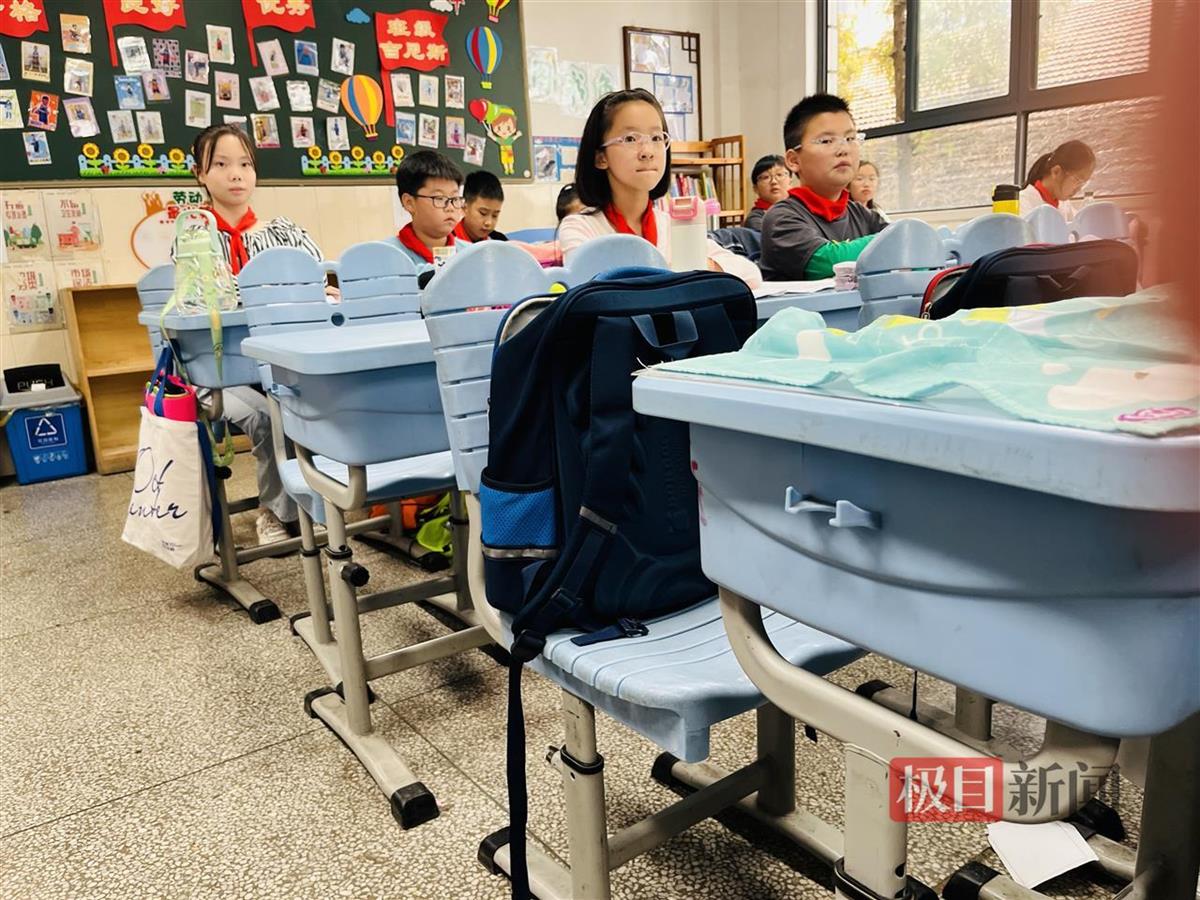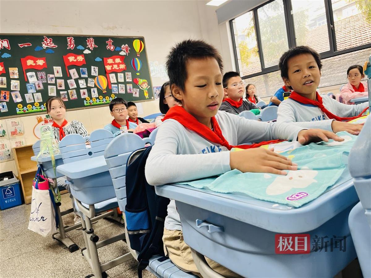 10月18日,极目新闻记者从该校获悉,国庆节之后,学校把一个班的课桌椅分为三种不同高度——较低、中等和相对较高,这些课桌椅高度学生可以自行调整,同时针对低学段的学生,学校每月还会统计一次,请师傅帮忙调整高度。