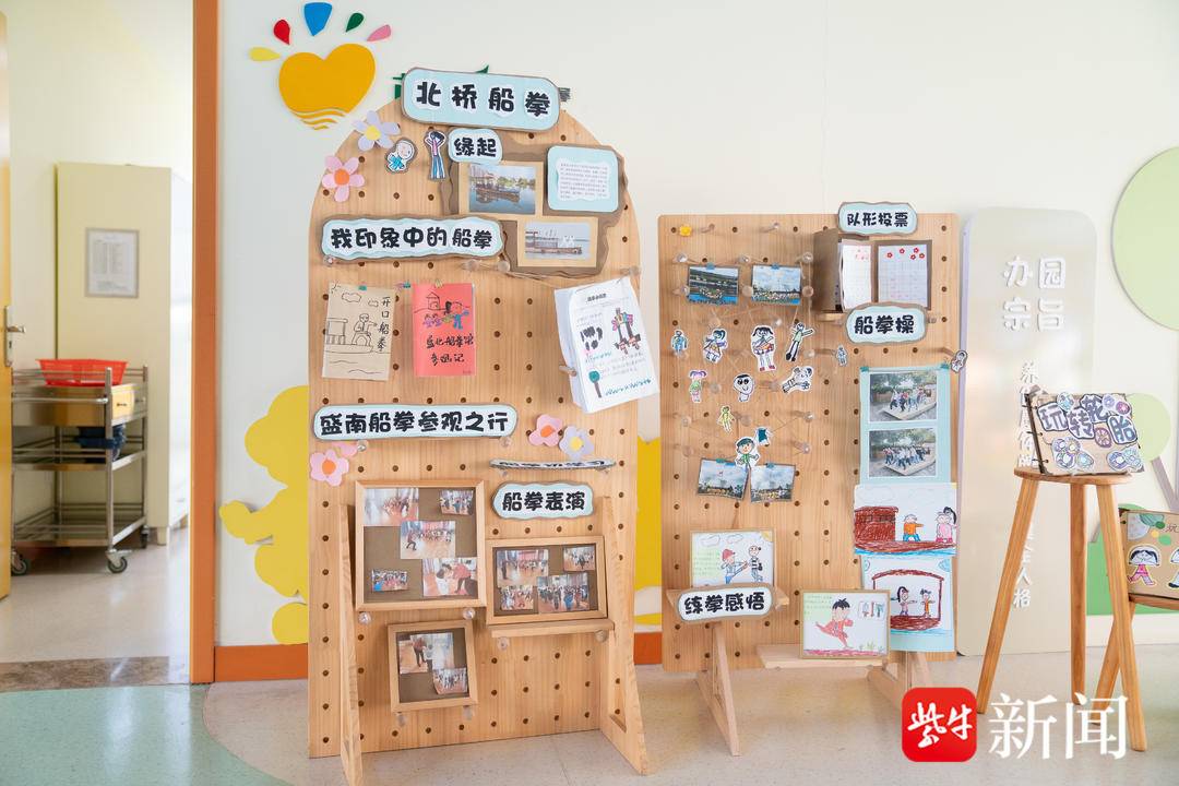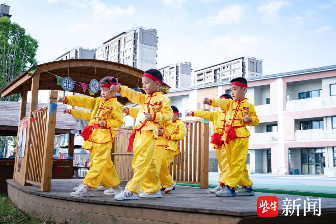 江南船拳是省级非遗项目,其中北桥开口船拳尤具特色。北桥开口船拳始于春秋,盛于唐代,强于明代,已有800多年历史。“2022年我们开始设立船拳课程,不仅邀请了船拳队队长来教授,还把船拳的招式拆解开来融入到日常的晨锻早操、体育教学、游戏活动中,努力让学校里人人都会打船拳。”北桥实验幼儿园园长邹曦介绍道,江南船拳在北桥有着丰厚的文化底蕴和群众基础,设立船拳课程是学校因地制宜、深思熟虑的结果,依托丰富的文化资源和社会资源,传承非遗文化,希望通过学习,让学生了解船拳、了解北桥,“真正传承北桥的优秀本土文化。”