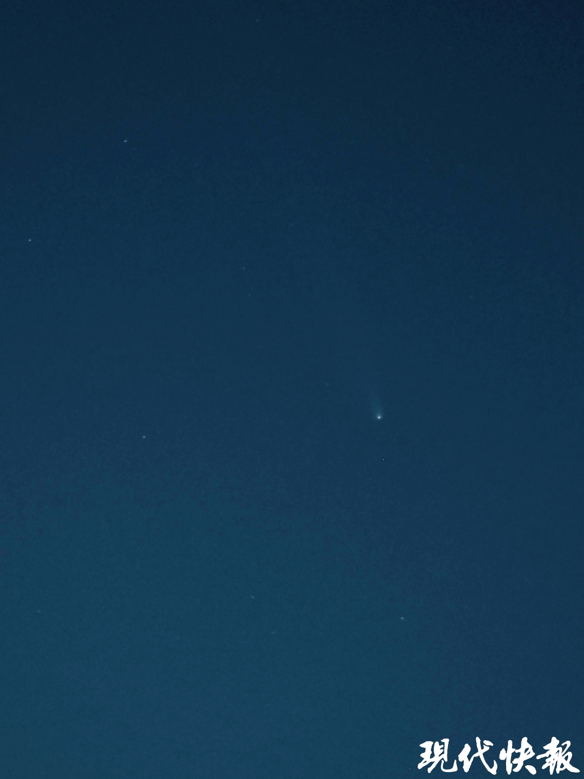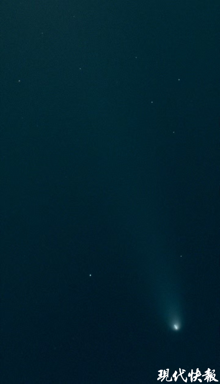 “这几天我一直在找恰当时间、恰当地点拍彗星。昨天晚上7点多钟,我终于在盐城市区世纪大道一小区楼顶拍到了彗星,很美,让我想起了小时候看到彗星的场景。”徐行说。