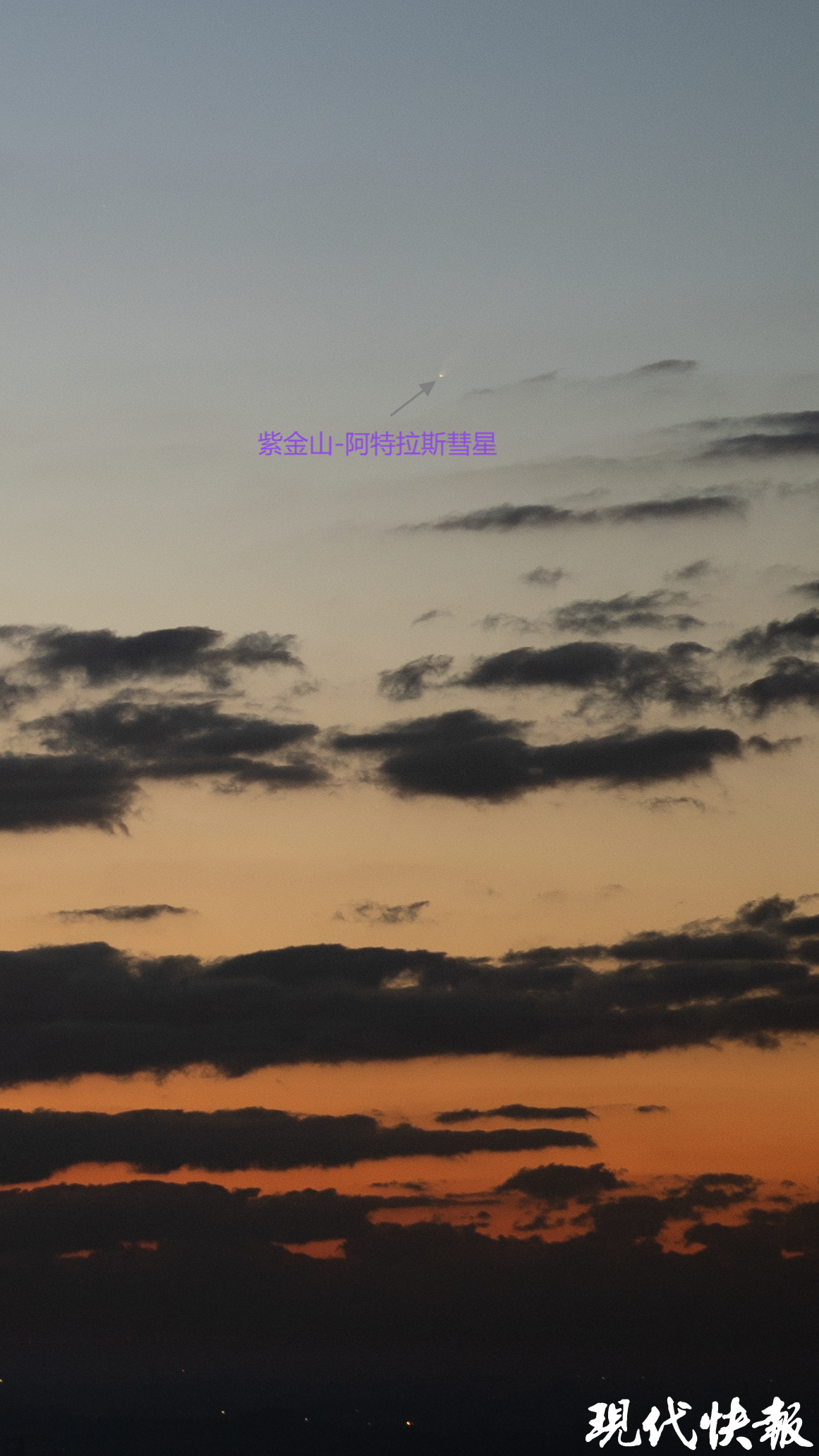 现代快报记者了解到,紫金山—阿特拉斯彗星于9月28日过近日点,因此在9月底至10月初的一周左右时间内,它在晨光中大放异彩,亮度一路飙升至1等左右。