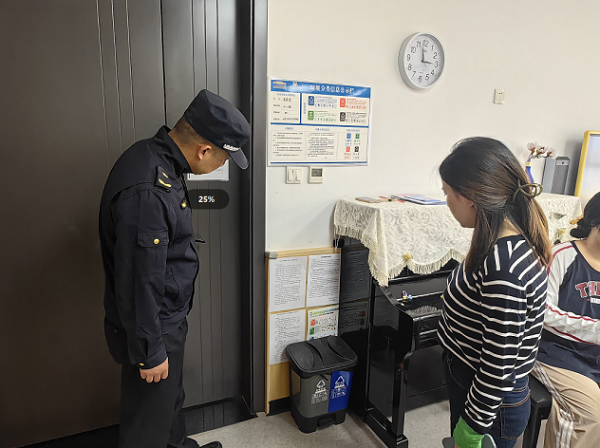 开展校园垃圾分类督导检查。执法人员一行实地查看了各校垃圾分类收集点设施配备使用情况、餐厅厨余垃圾分类投放收集情况、洗手间设施配备等情况,同时对垃圾分类台账及清运协议进行逐一检查。此外,检查了校园垃圾分类氛围营造情况,以及分类运输等工作的落实情况。