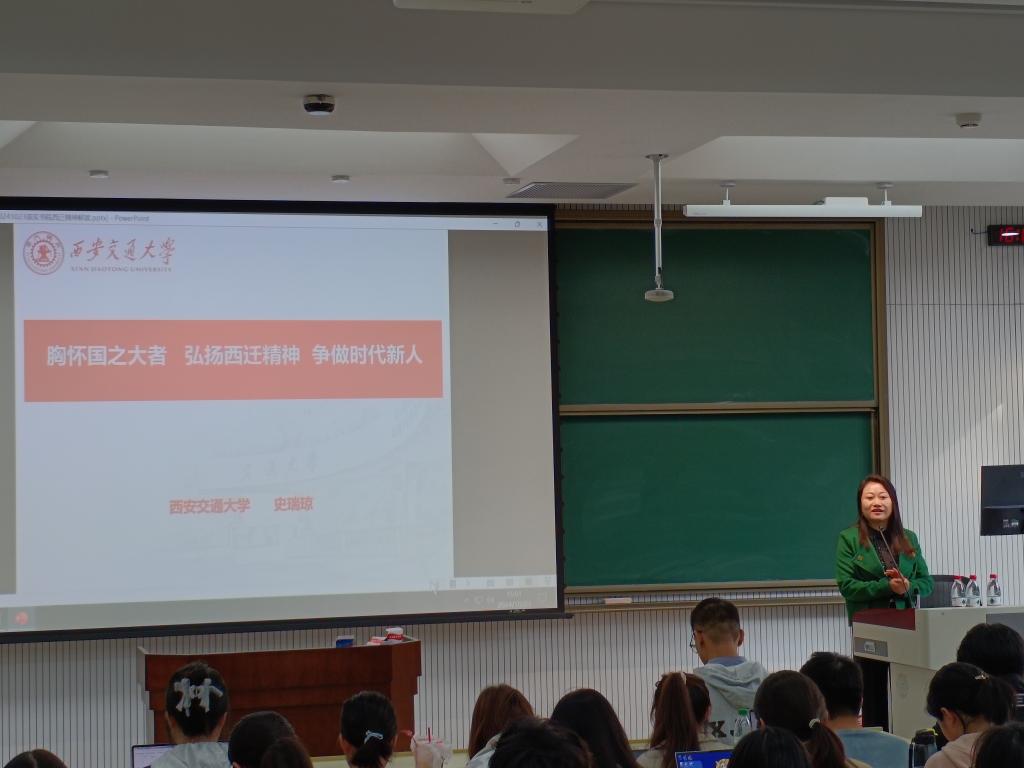 为深入学习党的二十大和二十届三中全会精神,全面贯彻习近平新时代中国特色社会主义思想,持续推进职能部门进书院,加强积极分子培养工作,10月23日下午,西安交通大学党委宣传部副部长史瑞琼受邀为同学们讲授主题为“胸怀‘国之大者’,弘扬西迁精神,争做时代新人”的主题党课。本次党课共有200余名入党积极分子参与学习。
