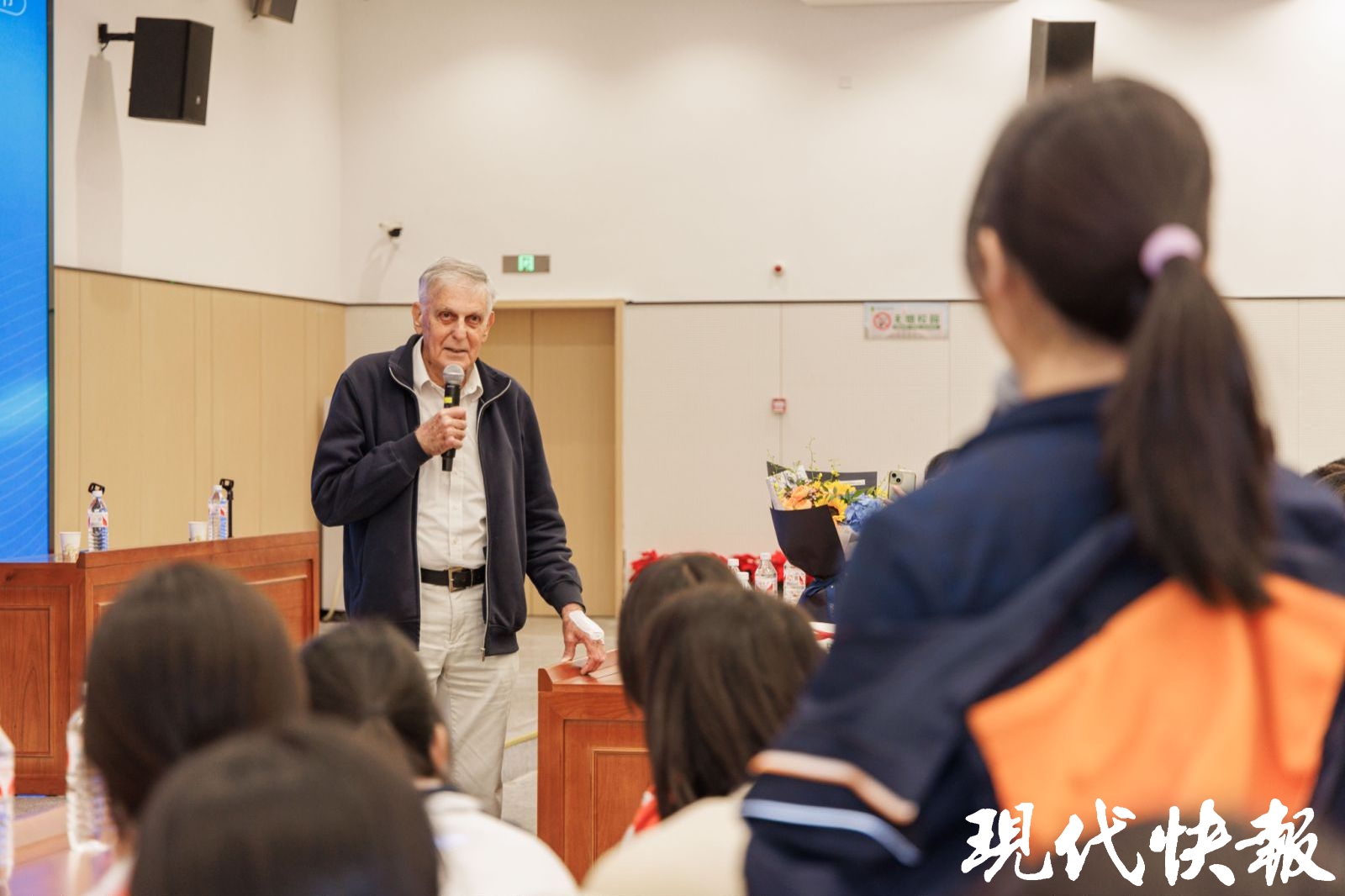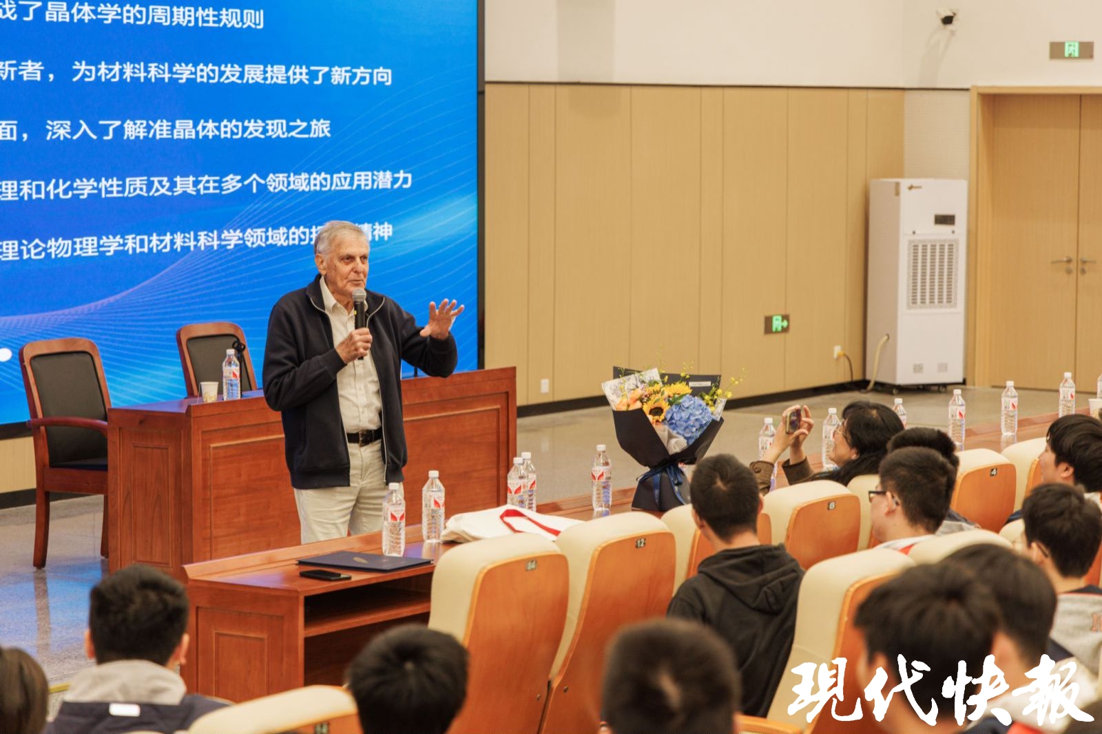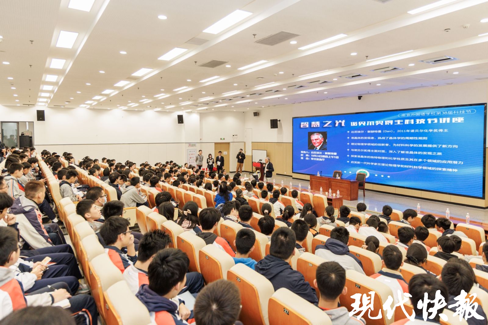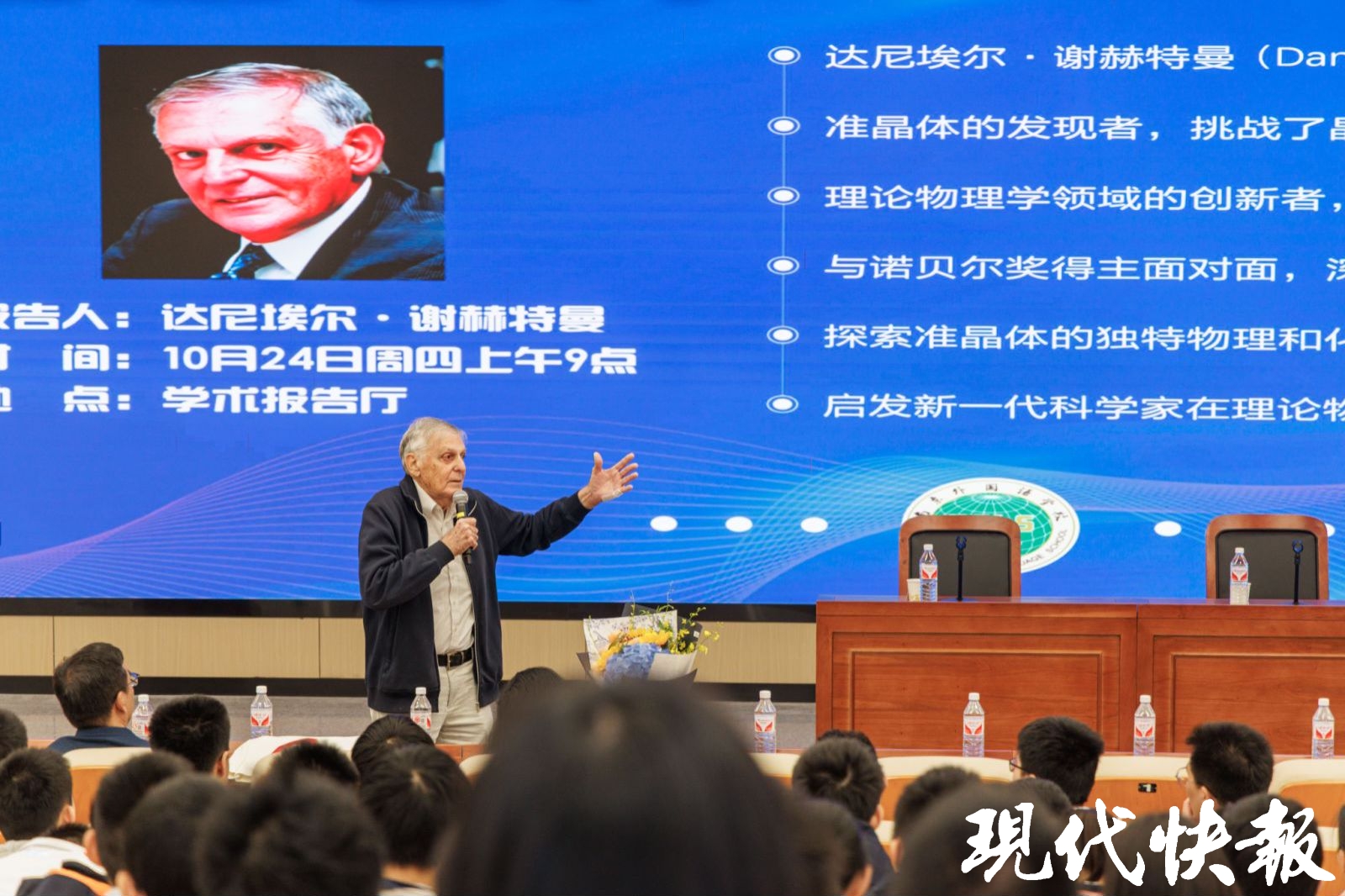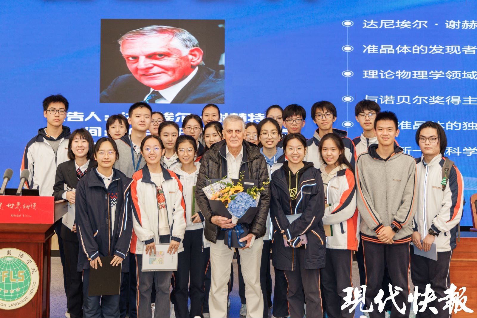 现代快报讯(通讯员 刘飞 记者 于露)10月24日,诺贝尔奖得主、物理学家达尼埃尔·谢赫特曼教授受邀来到南京外国语学校,为同学们带来了一场精彩而又深刻的学术盛宴。在讲座中,谢赫特曼教授分享了自己踏上科研之路的故事,他对科研规划的深刻见解给予了同学们极大的启发。