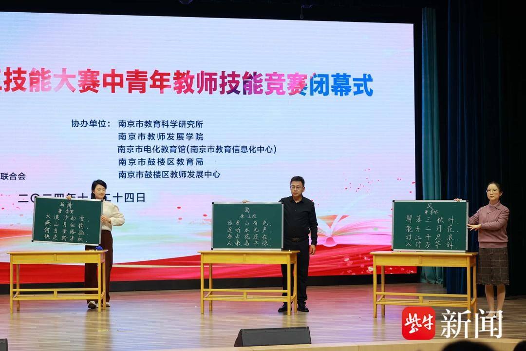 据悉,2024年度南京市职工技能大赛中青年教师技能竞赛由南京市中小学班主任基本功竞赛、南京市教师中华经典诵写讲技能竞赛、“南京教育好故事”演讲技能竞赛三个竞赛项目组成。闭幕式由三个竞赛项目的主题展示拉开序幕。科睿小学吴剑雄老师和芳草园小学葛宁、浦口区江浦实验小学刘雅婧、六合区东沟小学郭勇三位老师作为教师中华经典诵写讲竞赛获奖代表,分别带来诵讲展示和板书展示,他们用抑扬顿挫的朗诵和规范美观的书写展示南京教师扎实的专业基本功。