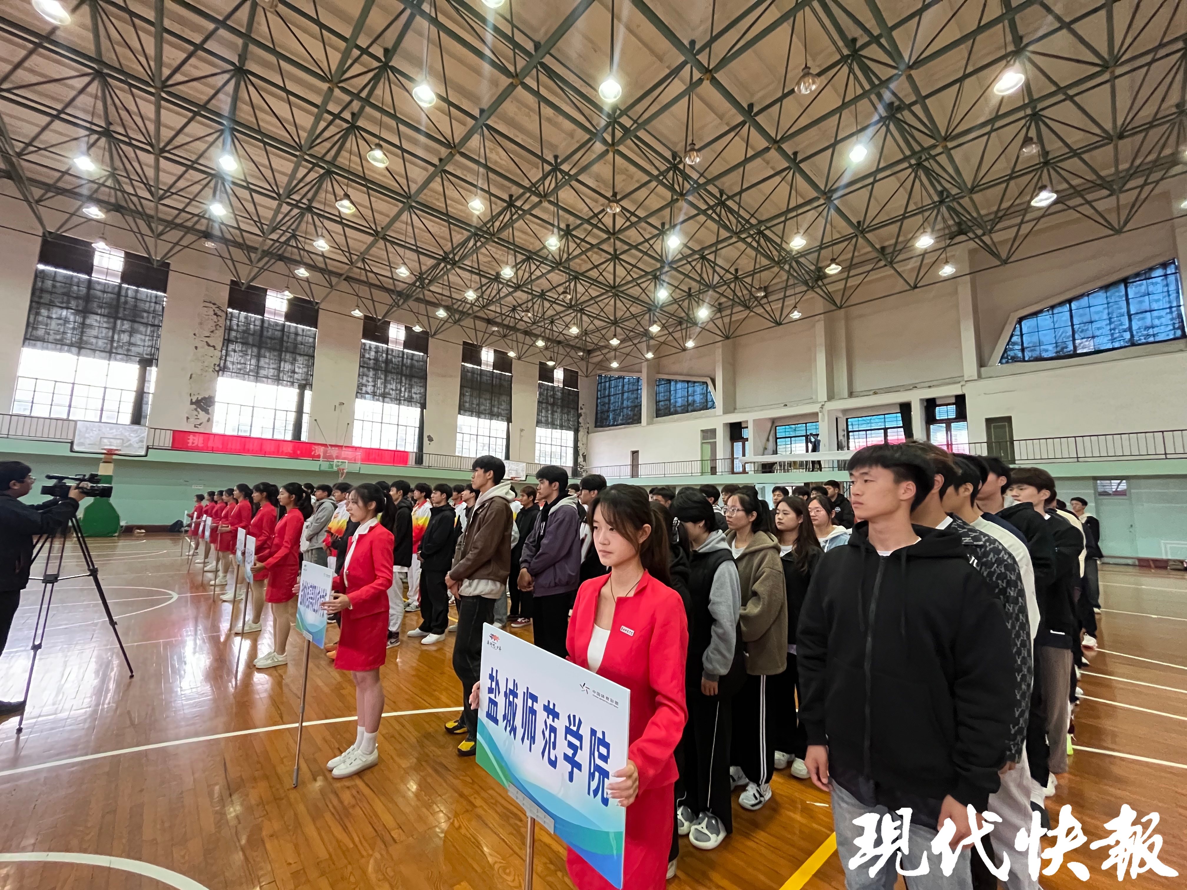 开赛仪式后,盐城农业科技职业学院与盐城师范学院两支篮球队举行了精彩的揭幕战。现代快报记者在现场看到,现场观众欢呼雀跃,每一次扣篮和三分球都将现场气氛推到了高潮。球员们在场上奋力拼搏,每一次进攻、每一次防守都扣人心弦,展现了青春的风采和运动的魅力。