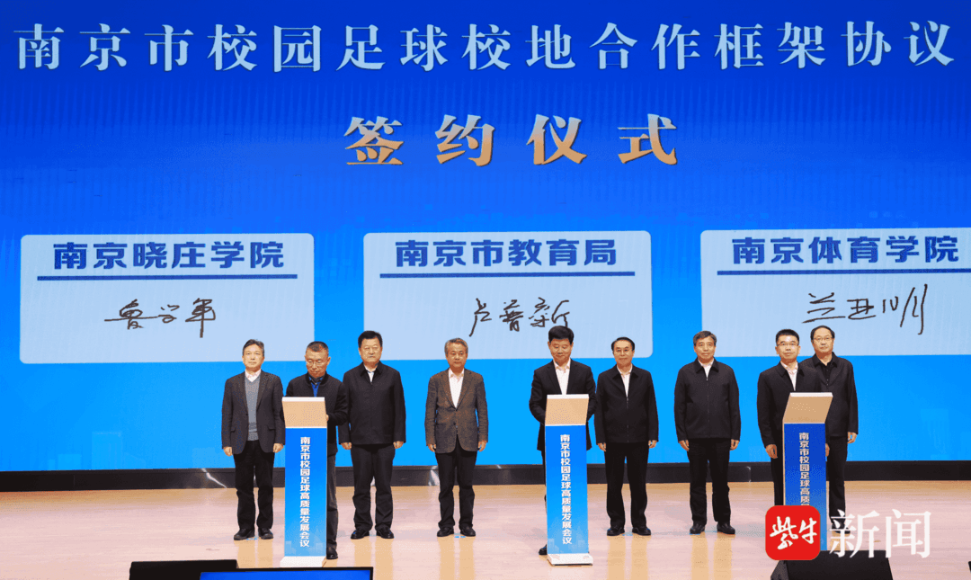 会议现场,南京市教育局还分别与南京体育学院、南京晓庄学院签署校园足球发展合作框架协议。今后,双方将在开展人才联合委托培养试点、建立师资培养与输送机制、搭建校园足球教科研平台、推动校地场馆设施资源共享、加强对外合作交流资源建设等方面加强合作,充分发挥高校、地方资源优势,助力南京校园足球高质量发展。