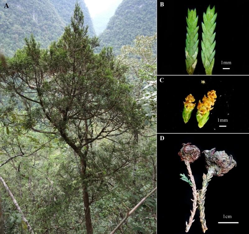 记者从四川大学获悉,近日四川大学与广西植物研究所等单位联合宣布,发现了一种生长于广西喀斯特地貌区的极危柏科新物种——广西黄金柏。此项研究成果近日已发表在国际权威植物分类学杂志《分类群(TAXON)》上,为柏科植物大家族再添新成员。