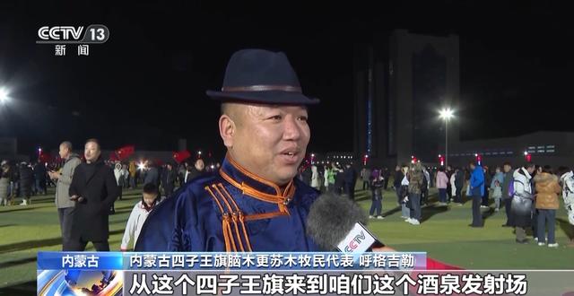 内蒙古四子王旗脑木更苏木牧民代表 呼格吉勒:原先都是看降落着陆,还有就是神舟一号到十一号,还有嫦娥五号、六号降落。今天我们一个小团队十多个人,从四子王旗来到酒泉发射场,心情特别激动。祝福我们的航天员平安健康,希望我们祖国的航天事业蒸蒸日上。