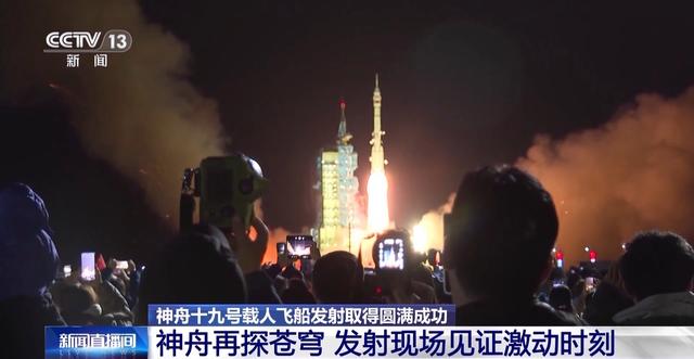凌晨4时27分,随着倒计时的结束,搭载神舟十九号载人飞船的长征二号F遥十九运载火箭在酒泉卫星发射中心点火发射,划破天际,直冲云霄。火箭的尾焰在天空中留下了一道美丽的轨迹,人们的欢呼声和掌声此起彼伏。