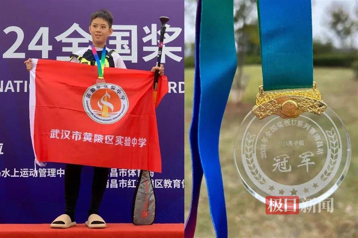 10月27日,2024年全国桨板U系列赛(南昌站),在江西省南昌市红谷滩区水上运动基地成功举办。来自武汉市黄陂区实验中学七(5)班的吴皓宇同学成绩出色,成功斩获U15男子组冠军。
