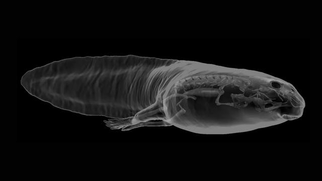 研究者们在文章中估计,这个化石的年龄在1.61亿年至1.68亿年之间,比之前的纪录保持者早了约3000万年。团队分析了在侏罗纪中期地层中发现的保存完好的蝌蚪化石。分析显示,这块化石的蝌蚪体长达15.24厘米,保存了头部、身体大部分、眼睛,甚至一些神经的细节。