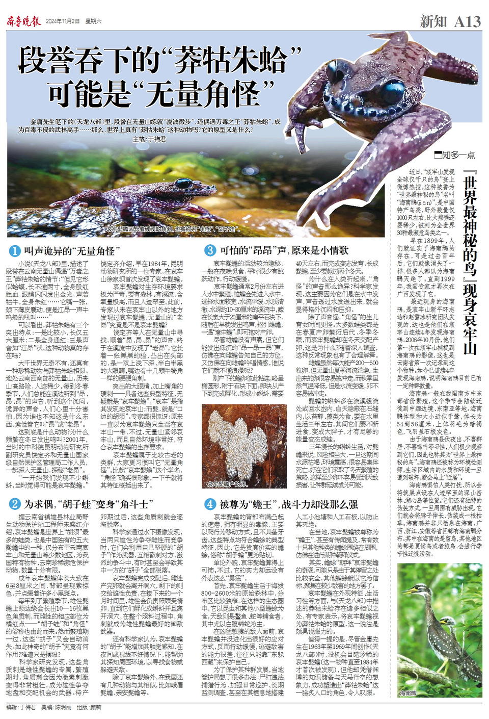 金庸先生笔下的《天龙八部》里,段誉在无量山练就“凌波微步”,还偶遇万毒之王“莽牯朱蛤”,成为百毒不侵的武林高手……那么,世界上真有“莽牯朱蛤”这种动物吗?它的原型又是什么?