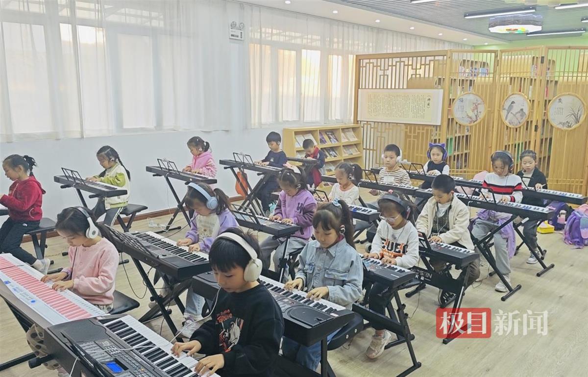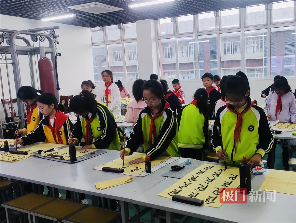 “我校目前拥有30多个社团,其中人工智能、足球、合唱、书法和绘画是特色,学生参与率超过90%。”校长李红芳介绍,为了满足孩子们个性化、多样化成长的需求,学校一方面与黄冈师范学院和武汉体育学院等高校成立实习共建基地,补充特色师资力量;另一方面,学校盘活现有资源,实行“一室多用”“一人多职”的管理模式,学校的空地也被用作体操、篮球、乒乓球、羽毛球训练场,还专门购置了一批批社团专用器材,保证课后服务保质保量开展。