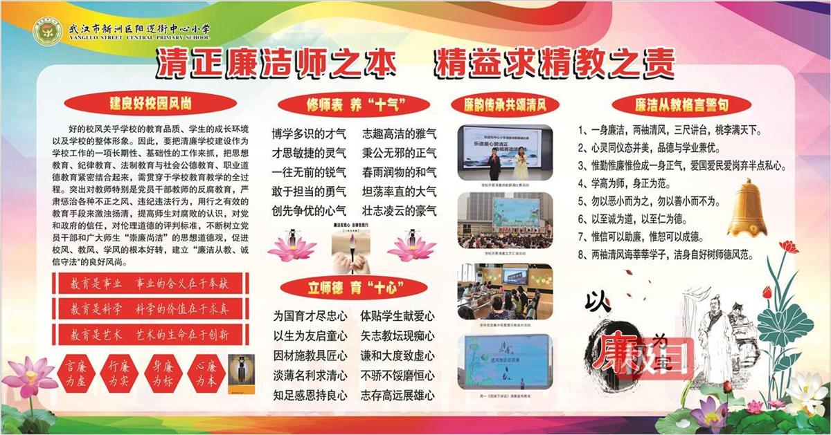 “把学校建成立德树人的‘一方净土’尤其离不开涵养师德师风,厚植清廉底色。”阳逻街中心小学党总支书记林俊伟告诉记者,学校是新洲区首批清廉学校建设示范点,为强化师德建设,该校建立“集中培训+全程打卡”的师德培养机制。
