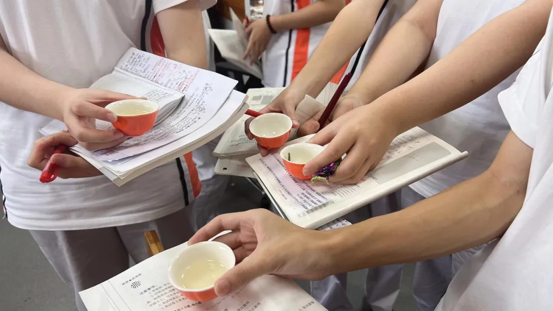 “说他们长大了,其实也是还没成熟的孩子,表达喜欢、感谢的方式,都很淳朴、真心,所以作为老师,也很珍视他们的感情。”作为回报,陈老师会在答疑后,给大家泡杯茶一起喝,缓解口干舌燥,还有在茶香中舒缓点高考压力,于是一起举杯的瞬间被手机定格。