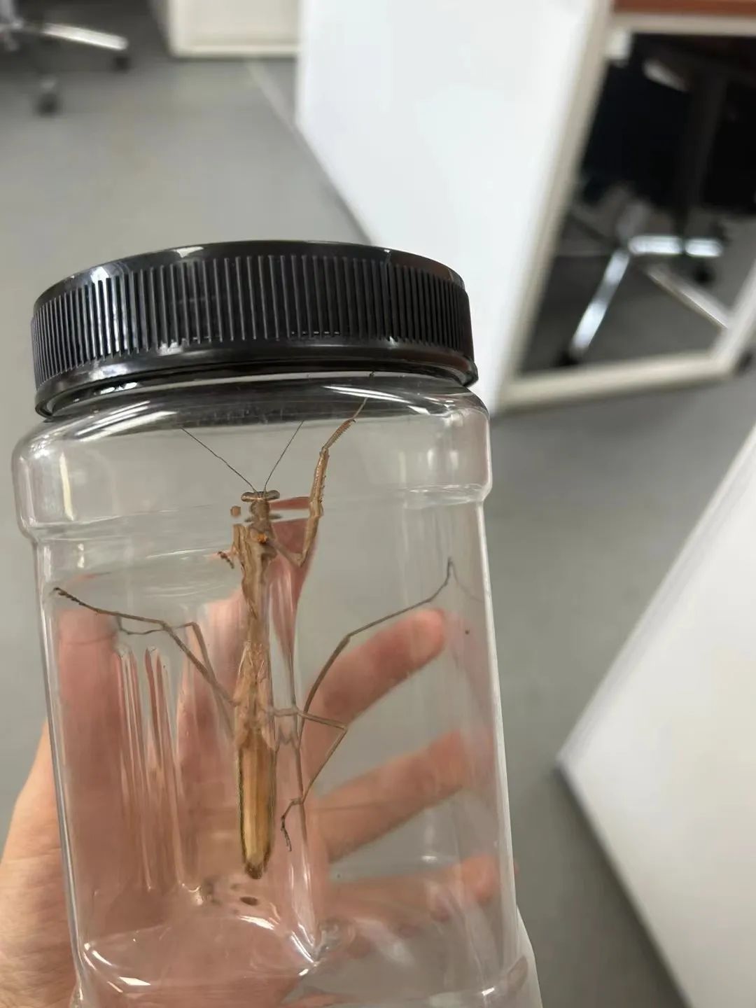 杭州第七中学的陈宏老师,是一名“90后”,教的是数学,有着多年高中班主任经历。前段时间,她的朋友圈分享了一张照片,一只玻璃瓶里,装着一只瘦长的螳螂。