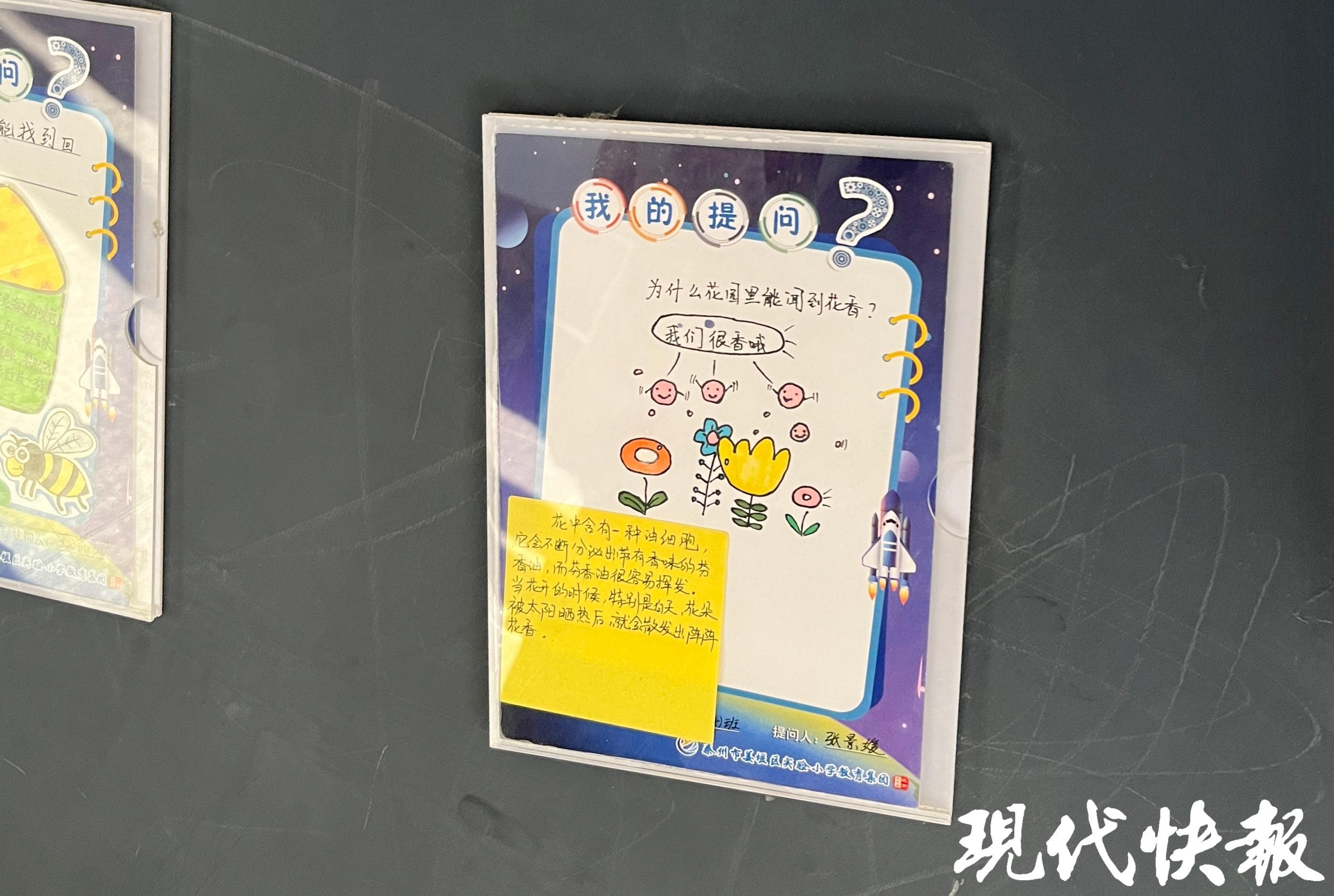 “为什么花园里能闻到花香?”在泰州市姜堰区实验小学教育集团北街北校区的“问号墙”上,记录着不少问题,有的问题旁还贴了便签解答。