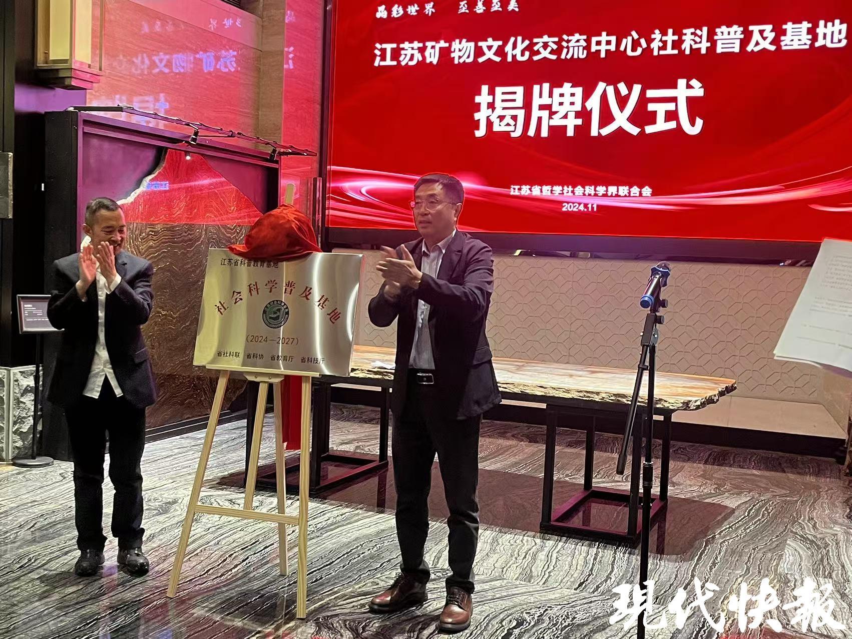 在揭牌仪式上,江苏省社科联党组书记、常务副主席张新科发表讲话。他表示,馆内的矿物晶体展品未经人工雕琢,以自然的力量震撼人心,正因其原始、纯朴与真实的品质,深深吸引着前来参观的青少年及科普爱好者。
