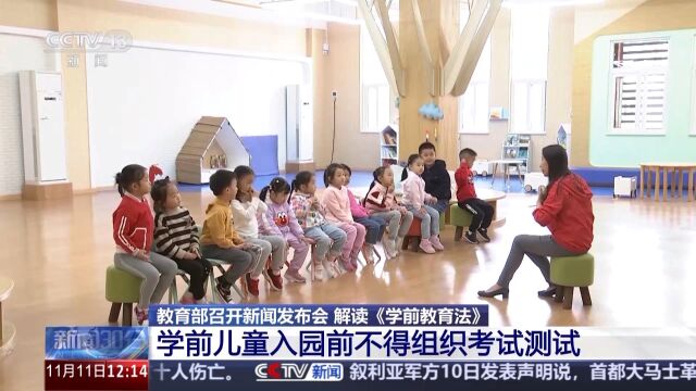 教育部今天召开新闻发布会,解读新出台的学前教育法。学前教育法明确了学前教育的公益普惠属性定位,规定国家推进普及学前教育,扩大普惠性学前教育资源供给,构建覆盖城乡、布局合理、公益普惠、安全优质的学前教育公共服务体系。