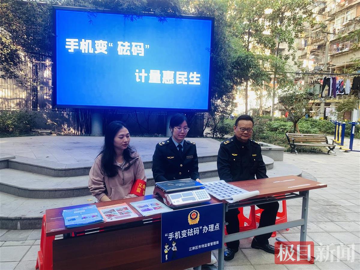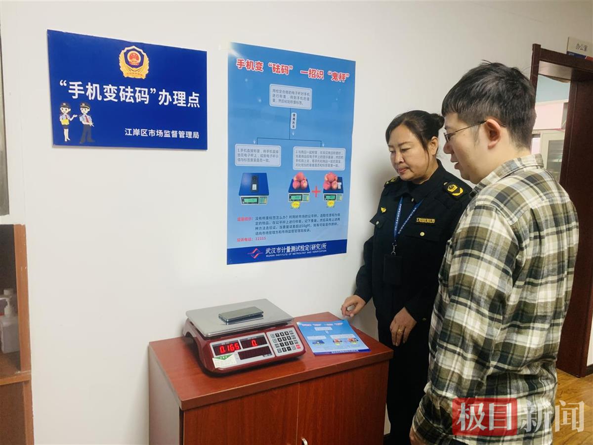 “‘手机变砝码’是什么新奇玩意啊?”11月11日上午,不少市民在武汉市江岸区安静社区开展的“手机变砝码”办理点现场,咨询民生计量知识。