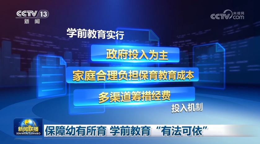 央视网消息(新闻联播):《中华人民共和国学前教育法》日前经十四届全国人大常委会第十二次会议表决通过,将从2025年6月1日起施行。教育部11月11日召开新闻发布会,介绍这部首次针对学前教育设立的法律。