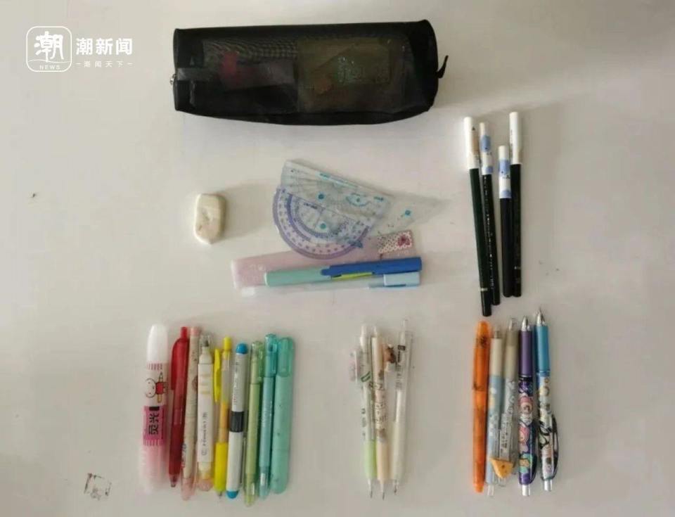 从老师们拍摄的图片看,女生笔袋里的文具数量更多,种类也更丰富,相对而言,部分男生的笔袋看起来有些“简陋”。
