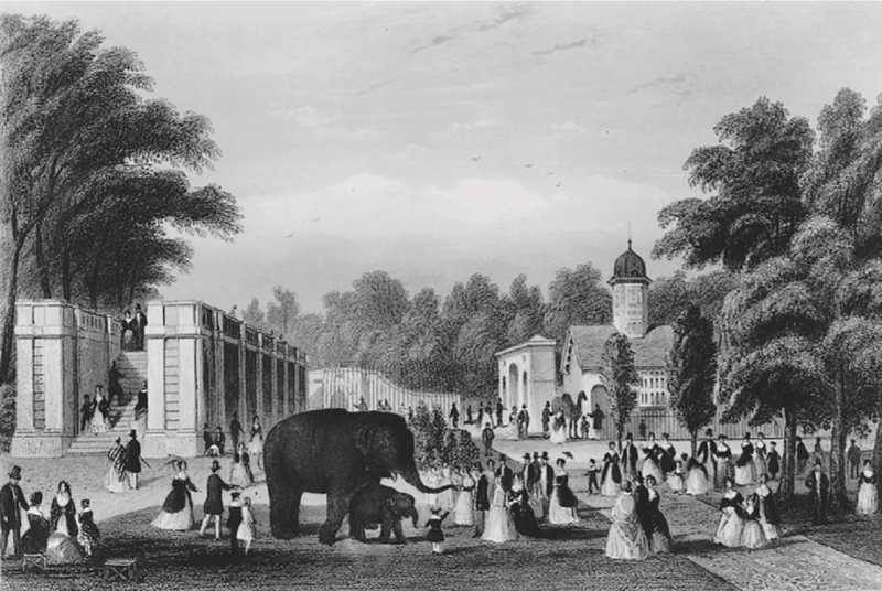 为了满足城市居民对自然的基本需求,现代意义上的动物园应运而生。随着1793年世界上第一家公共动物园——巴黎植物园的开放,加上追随者们,包括伦敦动物园(1828年)、阿姆斯特丹动物园(1843年)、柏林动物园(1844年)和纽约中央公园(1862年)的开放,历史达到高潮。最后以我们这个时代的“新动物园”结尾,如圣迭戈的野生动物园和迪士尼的动物王国。