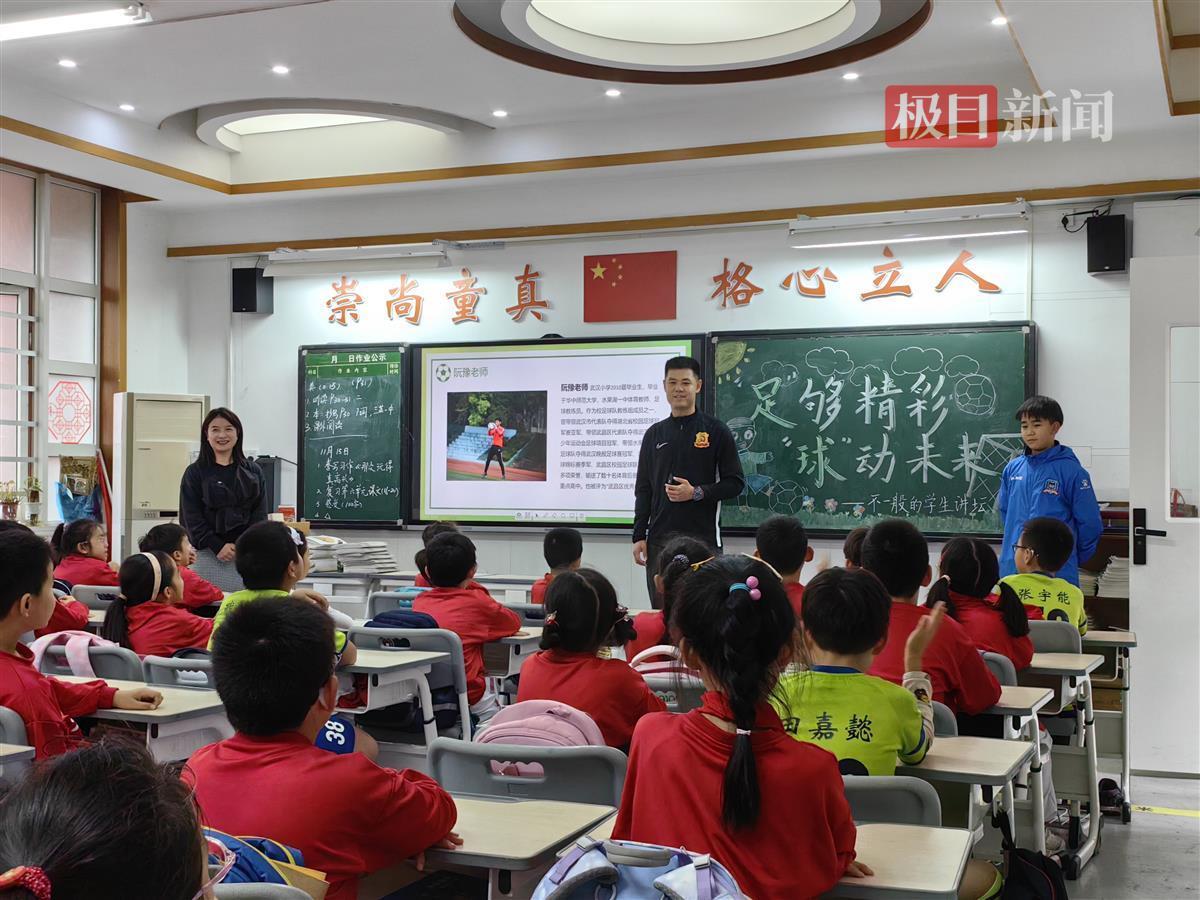 “我们学校最近正在举行校园足球联赛,为了更好地迎接比赛,选拔参赛队员,我想到了自己教过的擅长足球的两位学生,碰巧他们现在也是师生,这次课就成了我的学生和学生的学生来教我的学生。”彭晶老师告诉极目新闻记者。