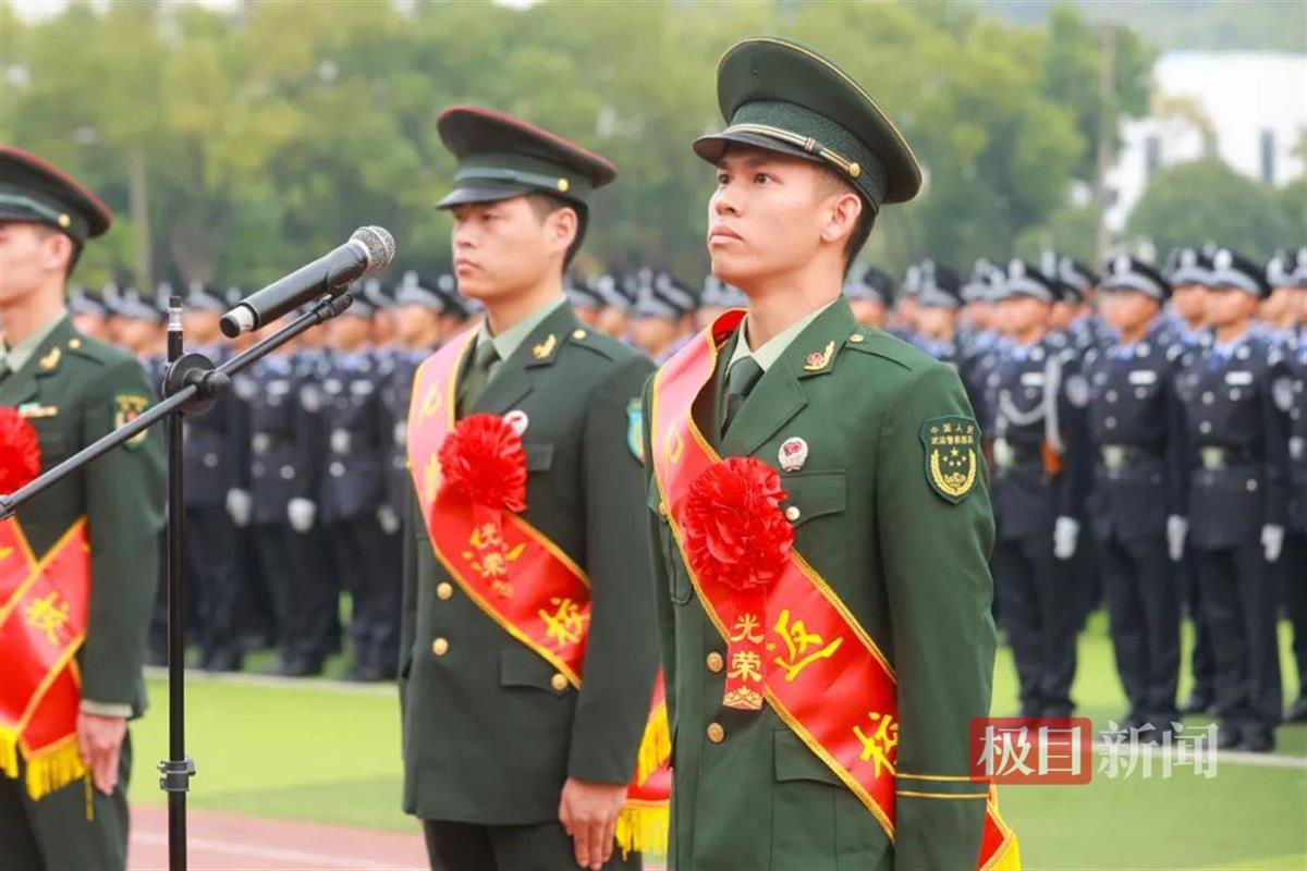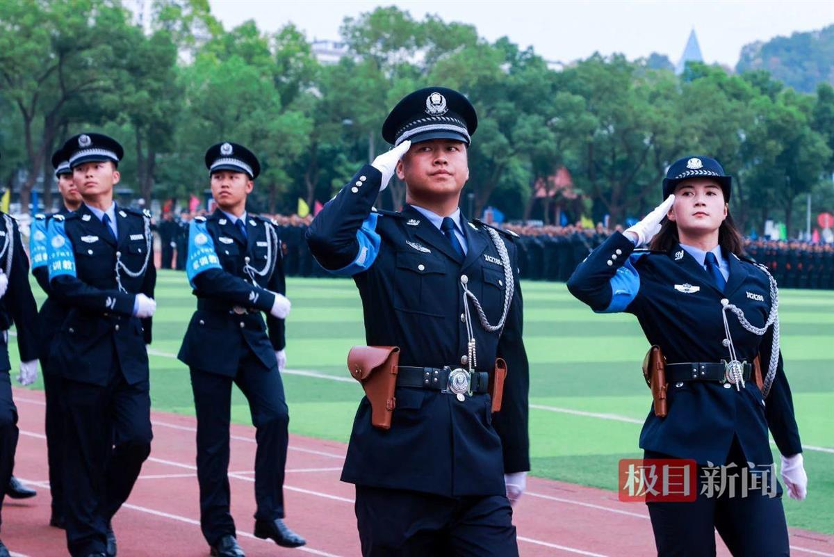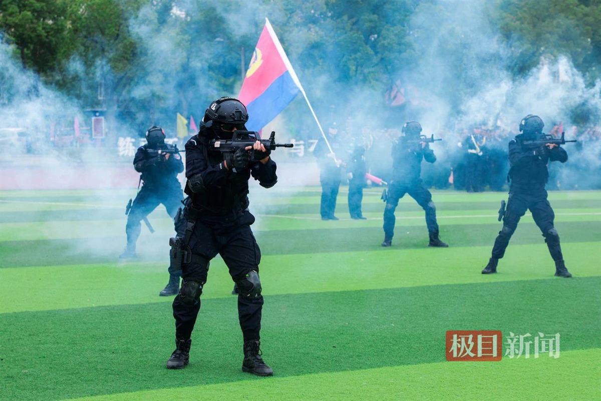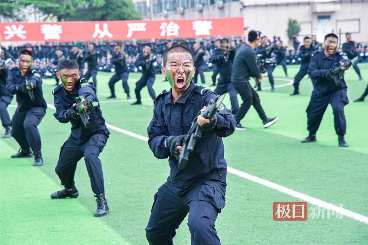 极目新闻记者看到,方队展示结束后,队列示范班、擒敌拳方队、反恐战术手语方队、刺杀操方队、应急棍术方队、匕首操方队、56式女子枪操方队、警棍盾牌方队、武术表演依次进行汇报表演展示,新生们摔擒合一、拳拳生风,手持钢枪、势如破竹,棍术格斗、攻防一体,一声声口号整齐嘹亮,现场掌声阵阵。