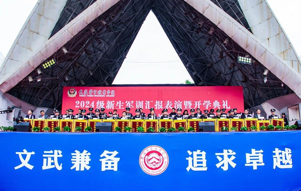 14日15时,随着升旗仪式开始,武汉警官职业学院2024级新生军训汇报表演暨开学典礼,在东西湖校区的操场正式拉开帷幕。仪仗方队高擎党旗、警旗、校旗率先出场,带领警徽和护徽方队、女子方队、一营男子第一方队、教官方队等26个方队依次走过主席台接受检阅。